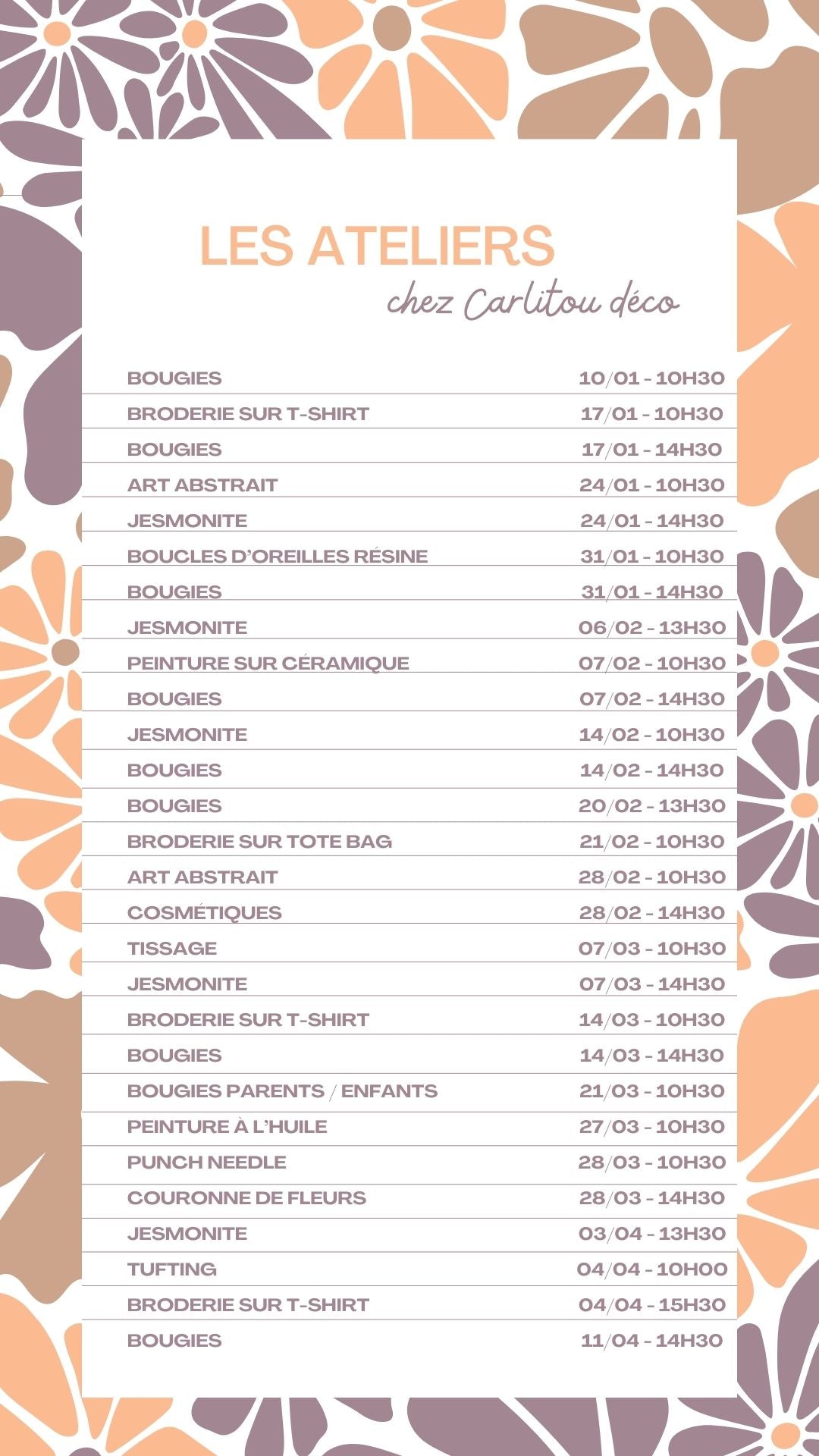 Chez Carlitou déco, nous te proposons toute une gamme d'ateliers créatifs ! ...