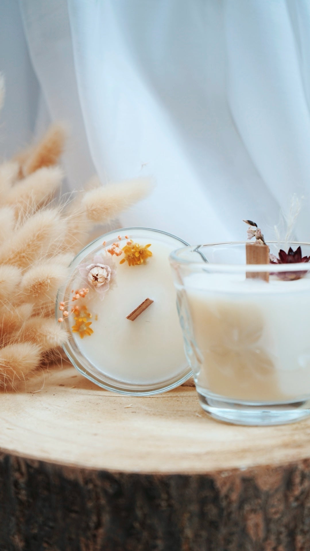 Les fleurs et les contenants sont différents pour chaque bougie.